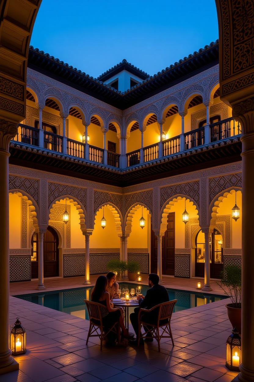 End your day with a night walk along the Guadalquivir River, where illuminated bridges reflect on the water, and the Torre del Oro (Golden Tower) stands as a sentinel from Seville’s maritime past. For those wishing to continue the evening, attend a late-night flamenco show in a traditional tablao: